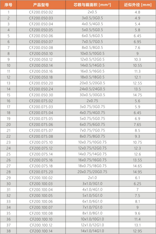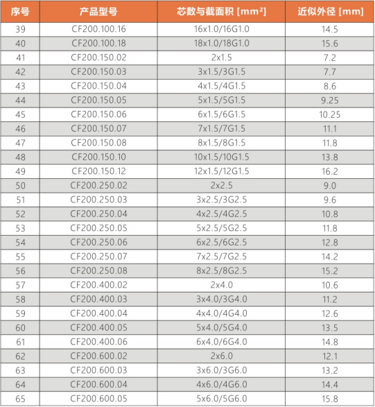 彎曲半徑                :     非拖鏈內運動:5.0X電纜外徑