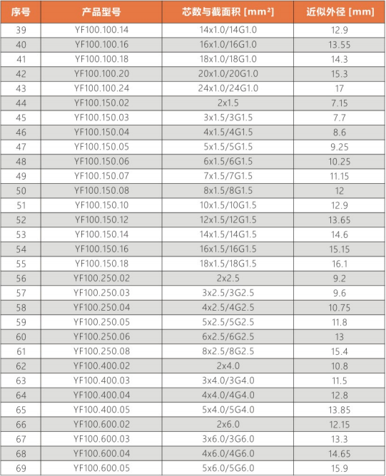 彎曲半徑 : 非拖鏈內(nèi)運(yùn)動(dòng):10.0X電纜外徑