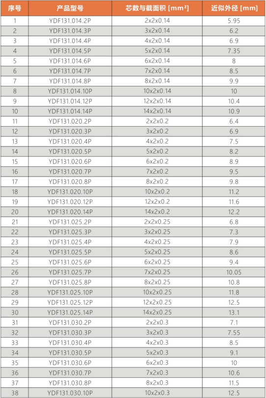 使用溫度范圍 : 非拖鏈內運動:-5 ℃ 至 105 ℃