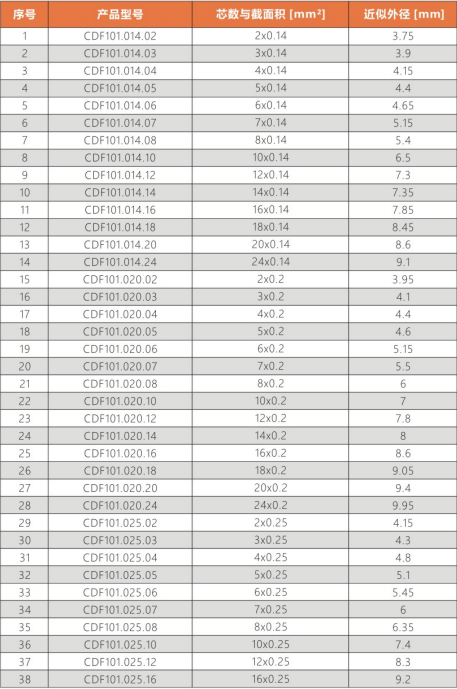 CDF101系列是順電針對自動化設備精心打造的高性能數據傳輸拖鏈電纜。采用多層結構設計,確保抗拉性能與柔韌性并存。特制的屏蔽層有效降低電磁干擾,提高信號傳輸穩定性。適用于各種復雜工況,能夠在高速運動、標準彎曲半徑拖鏈中的場景下表現出色。為您的自動化設備帶來卓越品質與穩定性能。