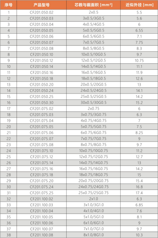 彎曲半徑 : 非拖鏈內運動:5.0X電纜外徑