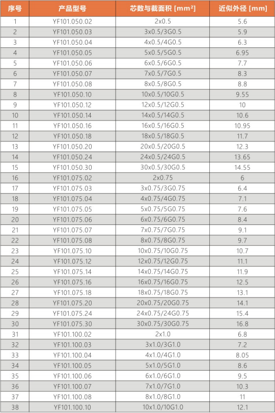 使用溫度范圍 : 非拖鏈內運動:-5 ℃ 至 105 ℃